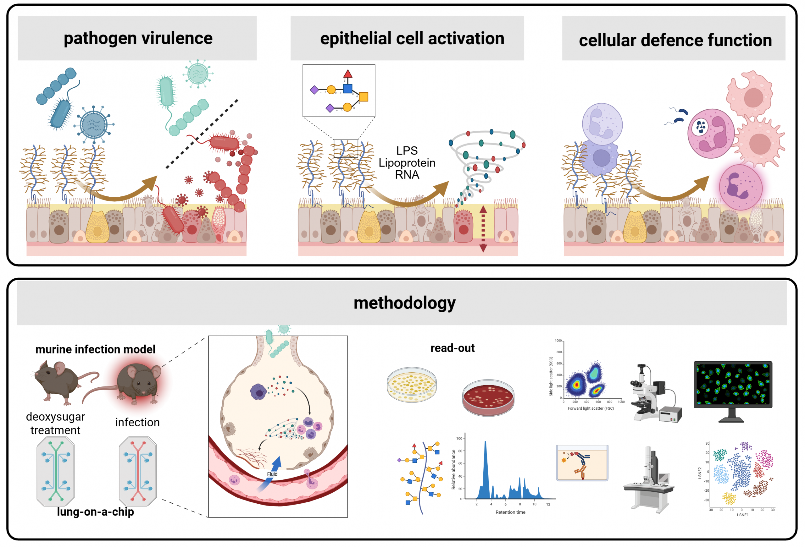 To dissect these interactions, we employ molecular, glycoengineering and imaging approaches that enable high-resolution analysis of barrier function, immune activation, and the epithelial glycome. Through these studies, we aim to reveal how the mucosal barrier, its sugars and cells, regulate immunity and inflammation, providing insights into mechanisms of protection and pathology in the respiratory tract.